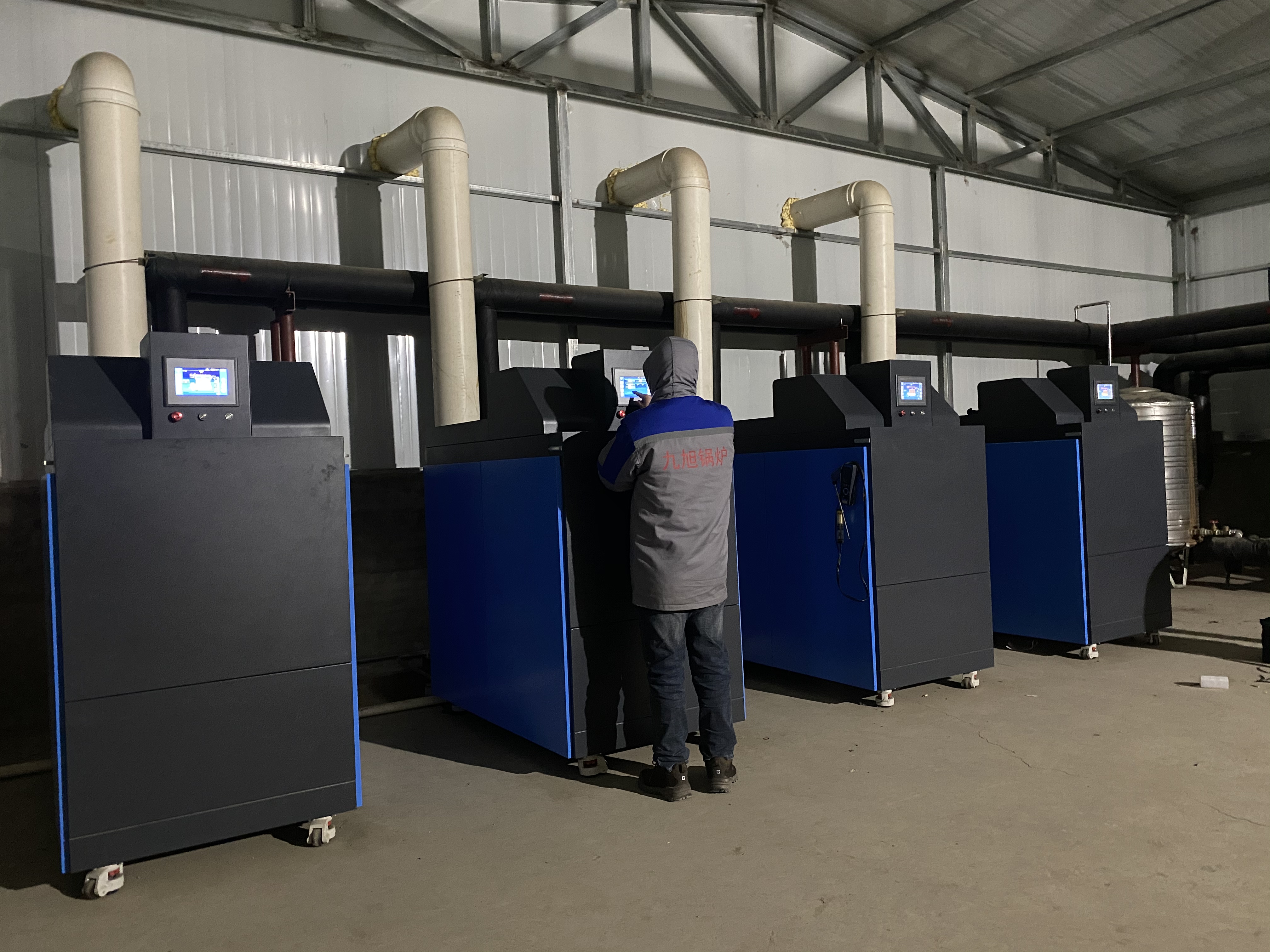 項目情況:本項目為養雞場供暖項目,占地面積為2萬平米,用戶自建氣站。因設計需求,室內溫度需達到35℃,末端為風盤供暖,采用5個蒸噸的常壓低氮冷凝鍋爐。用戶需要滿足溫度的同時減少氮氧化物排放,達到環保要求,經檢測后九旭陽光鍋爐符合各項標準。